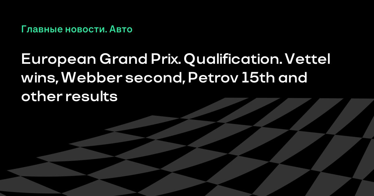 European Grand Prix. Qualification. Vettel wins, Webber second, Petrov 15th and other results