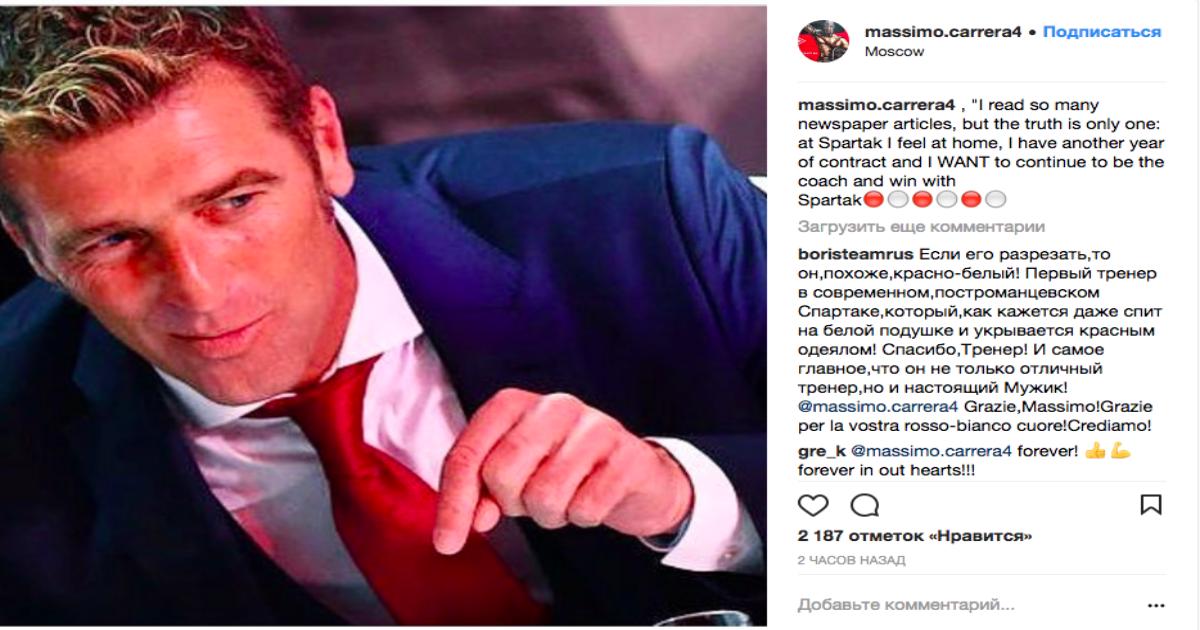 У меня впереди еще год контракта, и я ХОЧУ остаться тренером и побеждать со «Спартаком», – написал Каррера в инстаграме.