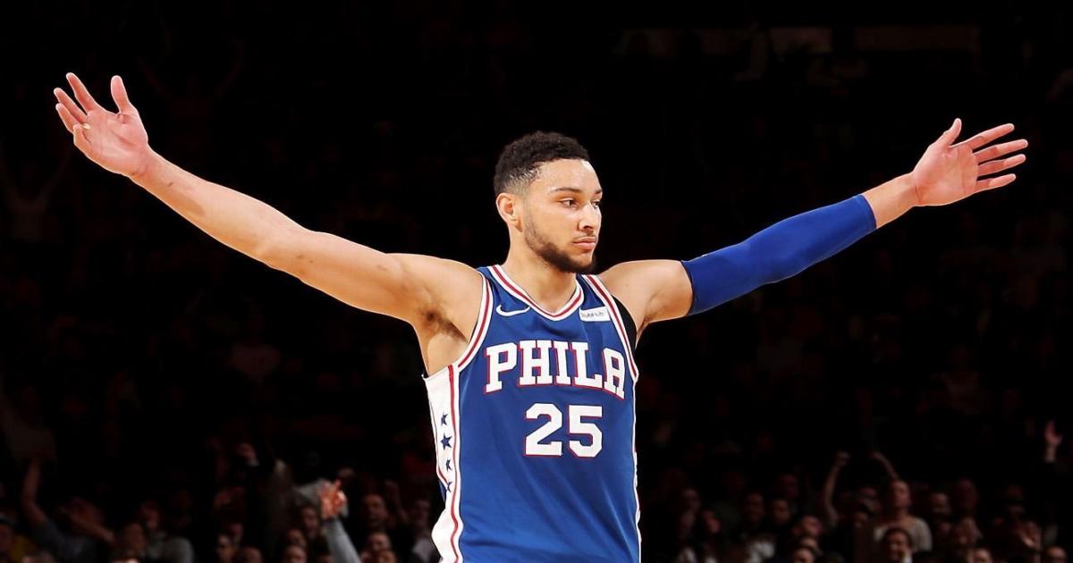 Бен Симмонс забил от щита, развернувшись в воздухе на 360 градусов