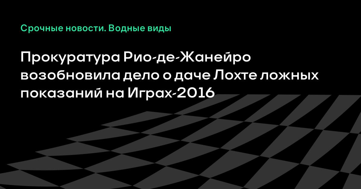 Прокуратура Рио-де-Жанейро вновь открыла дело против шестикратного олимпийского чемпиона по плаванию Райана Лохте, который обвиняется в даче ложных показаний во время Олимпиады-2016.