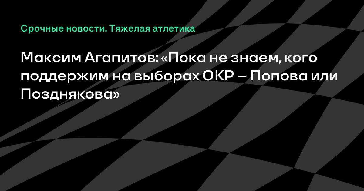 Президент Федерации тяжелой атлетики России (ФТАР) Максим Агапитов прокомментировал выдвижение четырехкратного олимпийского чемпиона по плаванию Александра Попова на пост главы ОКР.