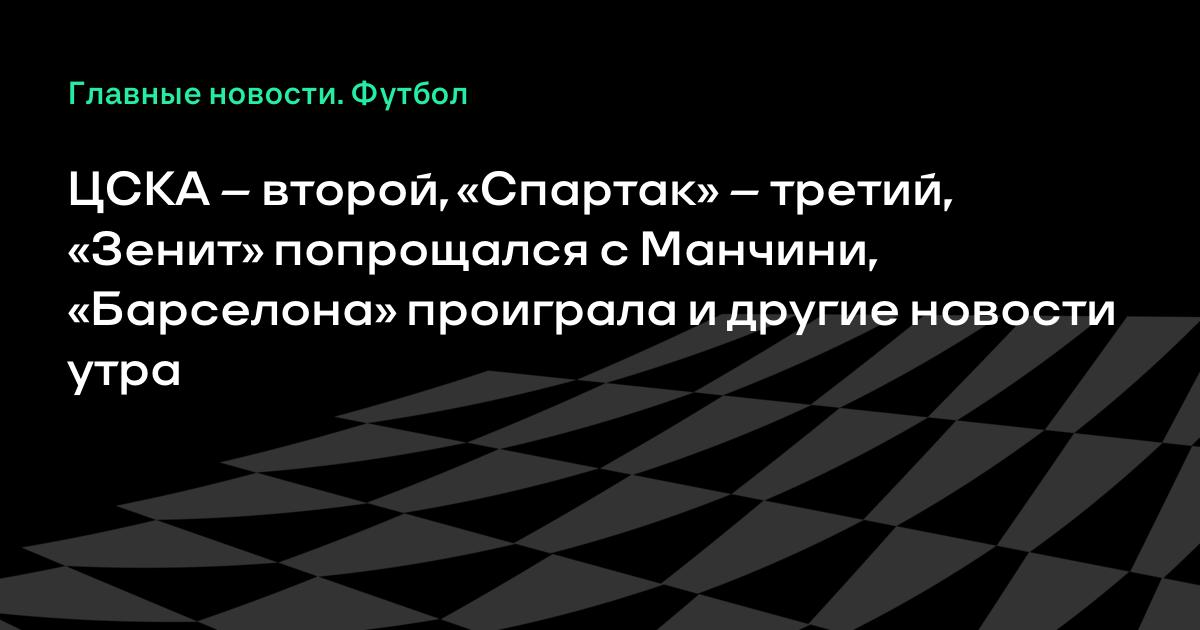 ЦСКА – второй, «Спартак» – третий, «Зенит» попрощался с Манчини, «Барселона» проиграла и другие новости утра