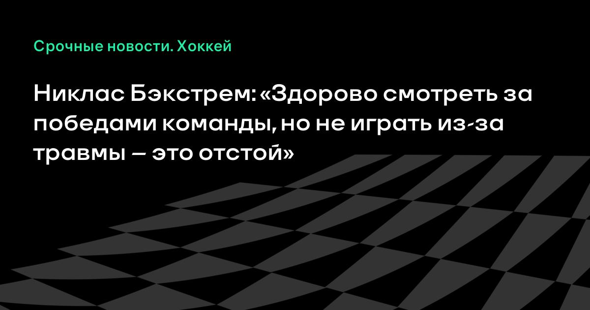 Конечно, это потрясающе, когда ты смотришь за победами команды. Но любой хоккеист хочет играть. Здорово, что я вернулся», – сказал Бэкстрем.