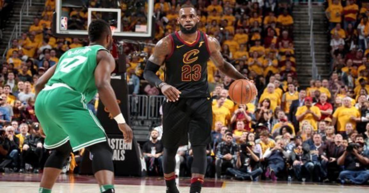 Форвард «Кавальерс» Леброн Джеймс во время четвертого матча с «Селтикс» забил с фолом в эффектном проходе.