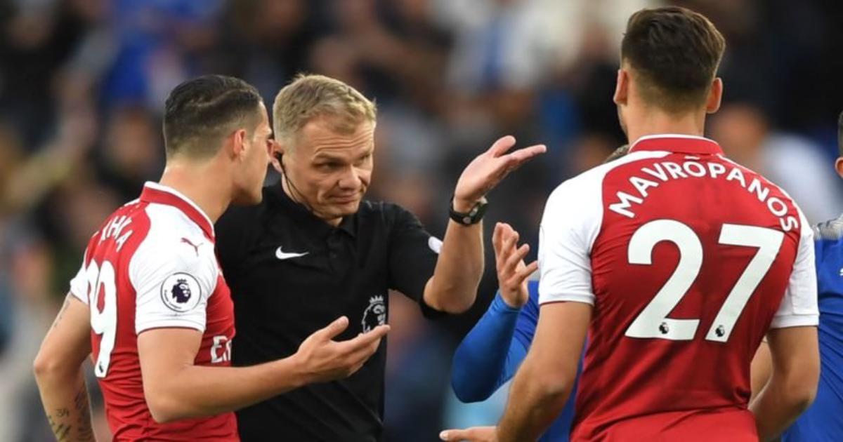 На 75-й минуте игры футболисты «Арсенала» окружили рефери встречи Грэма Скотта, который назначил пенальти в ворота команды, и начали с ним активно с ним спорить.