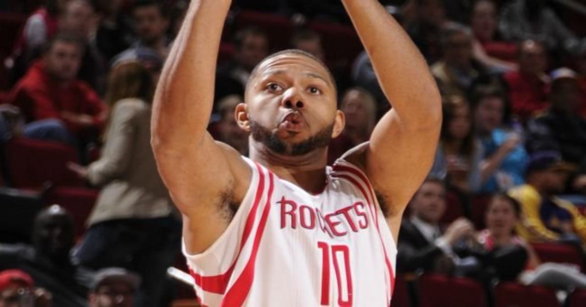 Защитник «Хьюстона» Эрик Гордон в первой четверти матча с «Голден Стэйт» прошел под кольцо и вколотил сверху двумя руками с фолом центрового соперника Кевона Луни.