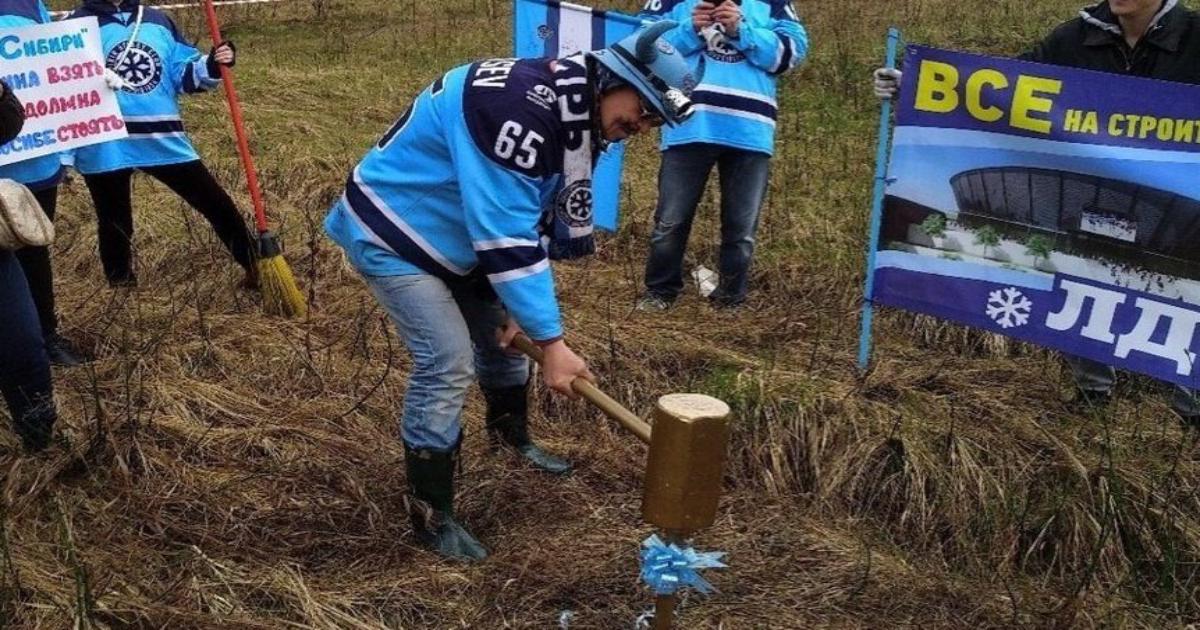 Болельщики «Сибири» вбили золотой гвоздь на месте строительства нового ледового дворца спорта! pic.twitter.com/zzgRjVf5AN