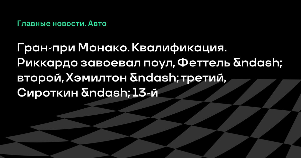 Гран-при Монако. Квалификация. Риккардо завоевал поул, Феттель – второй, Хэмилтон – третий, Сироткин – 13-й