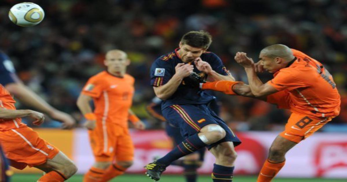 #OTD in 2010, Spain won the World Cup in a game mostly remembered for Nigel de Jong attempting to excavate Xabi Alonso’s chest with his foot pic.twitter.com/DFNDL9hiKy