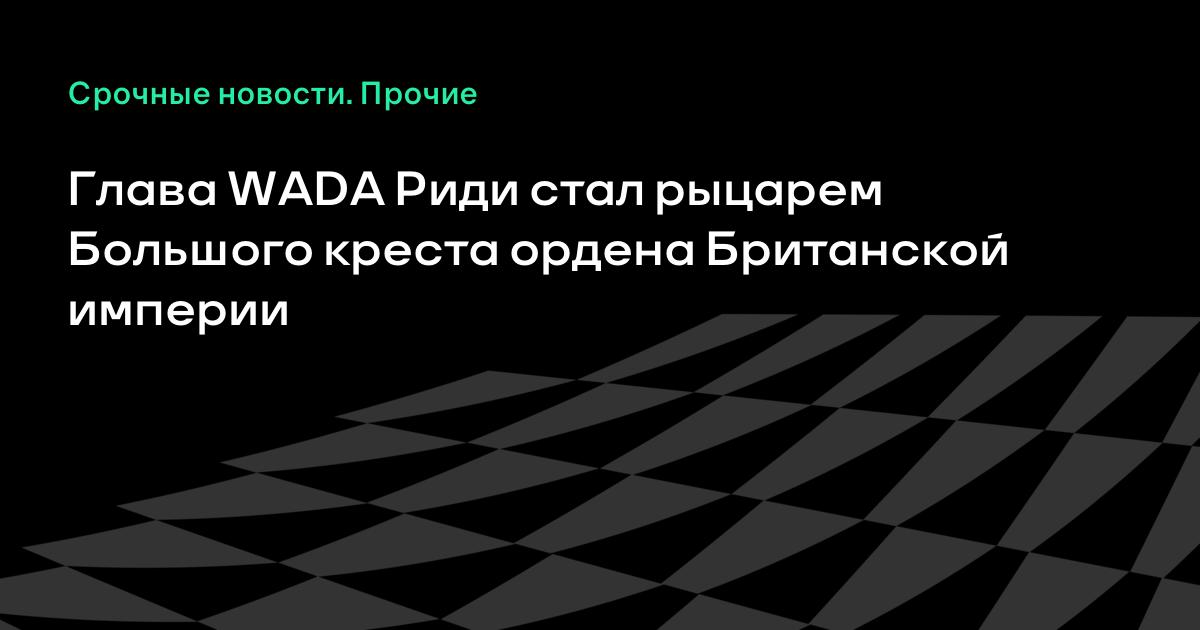 Президент Всемирного антидопингового агентства (WADA) Крэйг Риди стал обладателем звания рыцаря Большого креста ордена Британской империи.