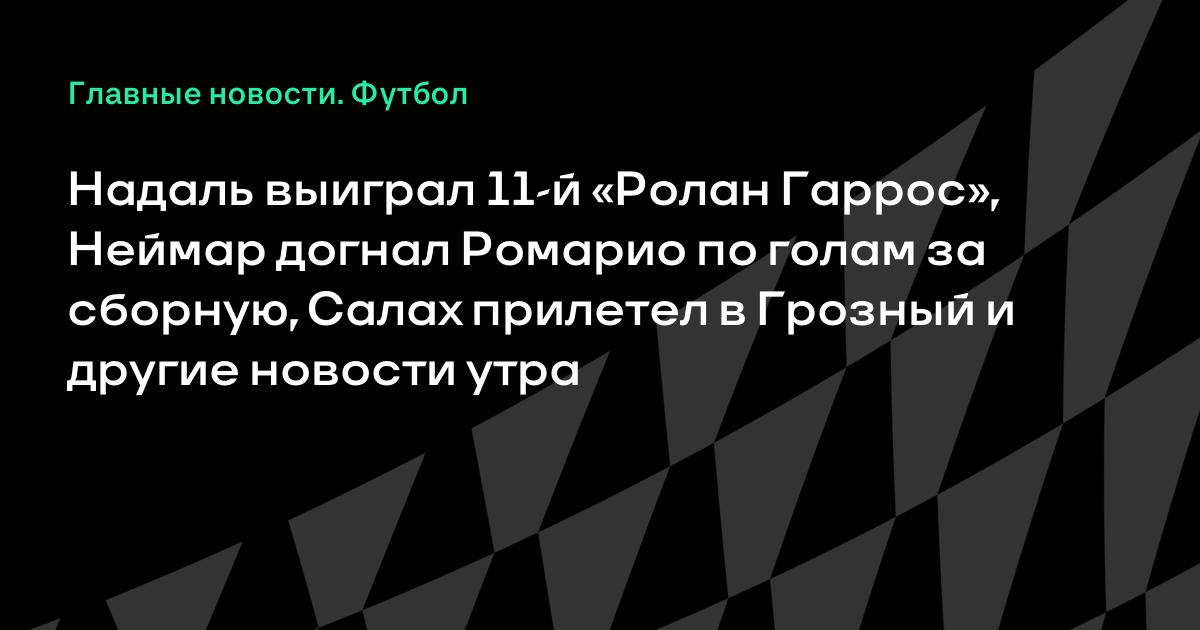 Надаль выиграл 11-й «Ролан Гаррос», Неймар догнал Ромарио по голам за сборную, Салах прилетел в Грозный и другие новости утра
