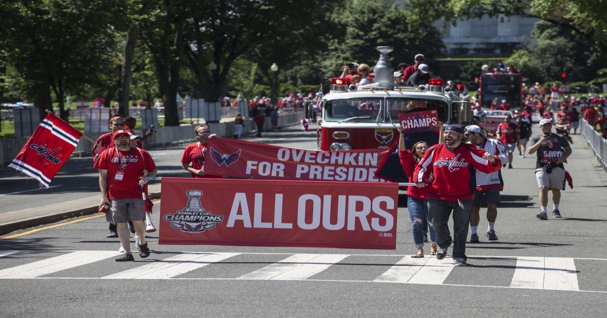 Перед автобусом, на котором команда проехала по столице США, несли плакат с надписью «Овечкина в президенты».