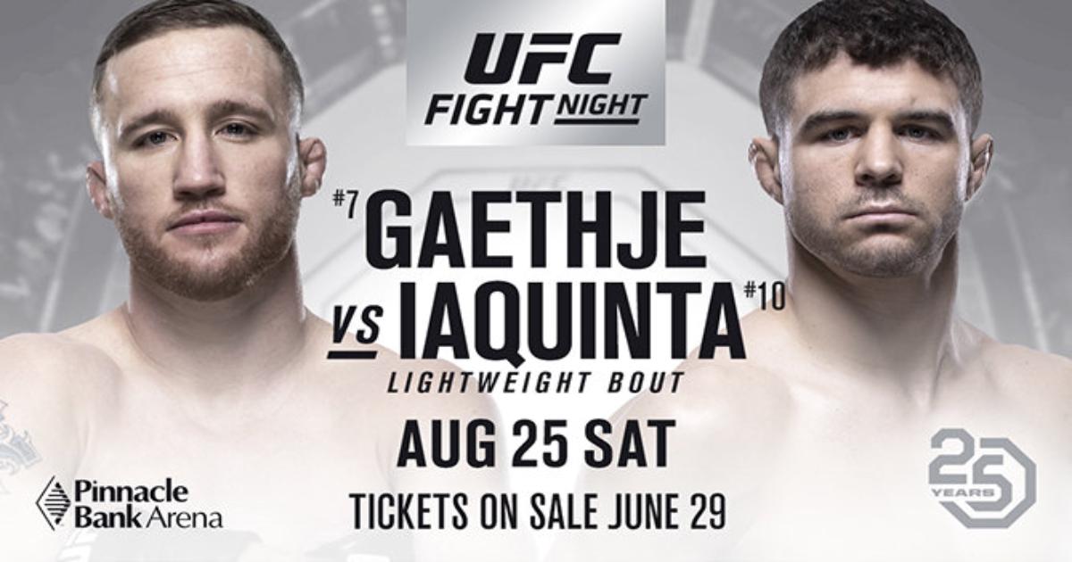 Экс-претендент на титул UFC в легком весе Эл Яквинта 25 августа встретится с Джастином Гэтжи. Бой станет главным событием UFC Fight Night 135 в Линкольне, штат Небраска.