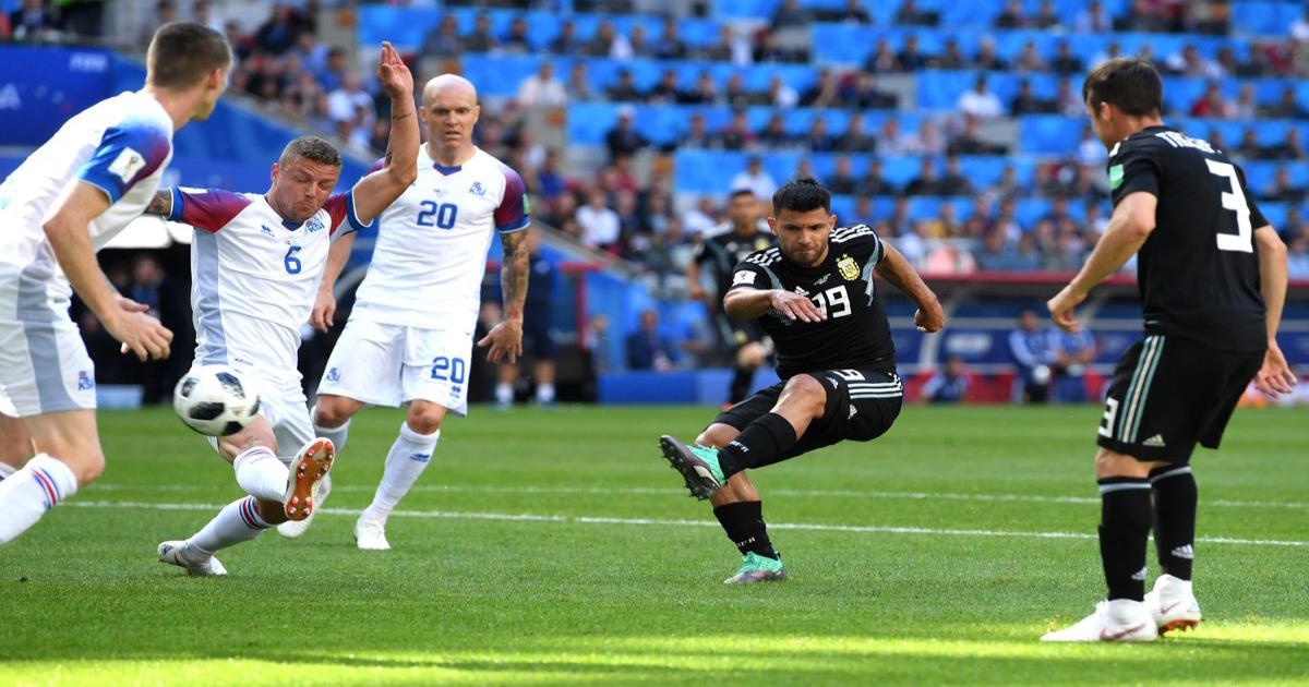 Нападающий сборной Аргентины Серхио Агуэро открыл счет в матче 1-го тура ЧМ-2018 против Исландии (1:1, первый тайм).