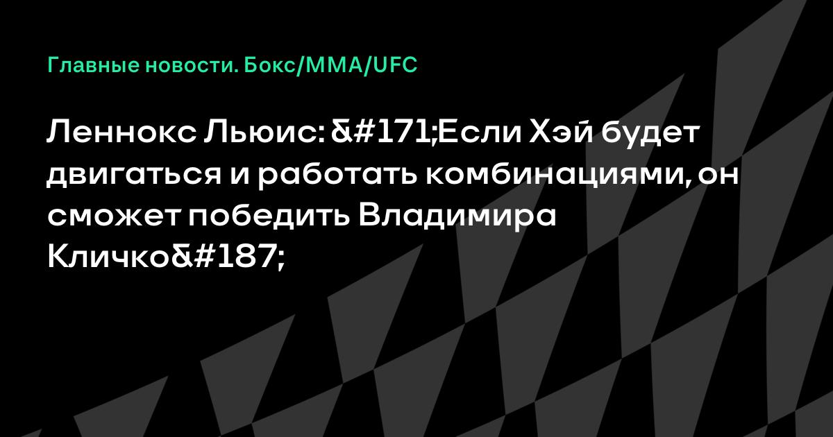 Леннокс Льюис: «Если Хэй будет двигаться и работать комбинациями, он сможет победить Владимира Кличко»