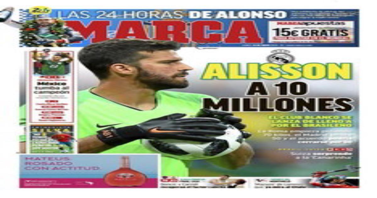 Римляне запросили за 25-летнего голкипера сборной Бразилии 70 миллионов евро. Мадридский клуб предложил за Алиссона 50 млн.