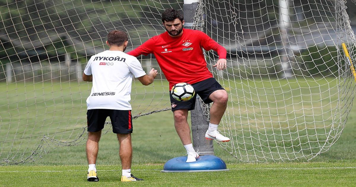 Защитник «Спартака» Георгий Джикия тренируется в общей группе «Спартака».