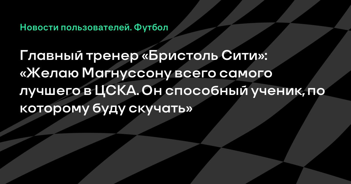 Главный тренер «Бристоль Сити»: «Желаю Магнуссону всего самого лучшего в ЦСКА. Он способный ученик, по которому буду скучать»