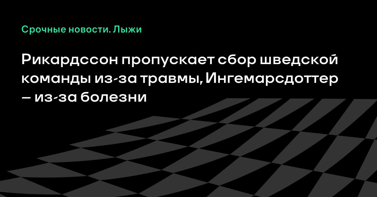 Рикардссон пропускает сбор шведской команды из-за травмы, Ингемарсдоттер – из-за болезни