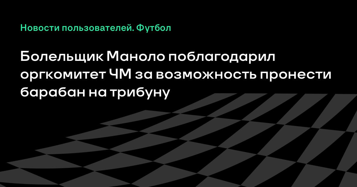 «Хотелось бы сказать огромное спасибо организационному комитету чемпионата мира за то, что разрешили пронести барабан на игру между сборными России и Испании. Для меня это действительно было очень важно, я благодарен за то, что мне пошли навстречу. Сложно делиться впечатлениями от игры, российские футболисты по праву заслужили выход в ¼ финала. Моя история на чемпионате мира в России заканчивается, но не заканчивается история чемпионатов мира, хотелось бы напоследок пожелать удачи и всех благ российской сборной ", — сказал Маноло.