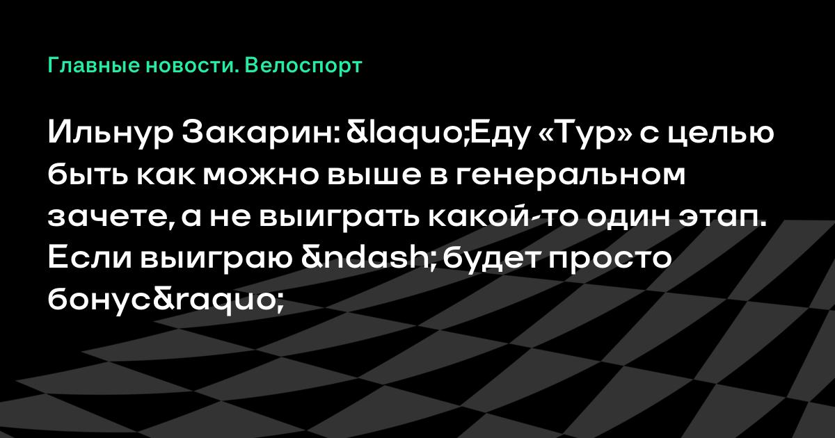 Но есть важный момент. Я еду «Тур» с целью быть как можно выше в генеральном зачете. А это значит, что не ставлю целью выиграть какой-то один этап. Если так случится, будет просто бонус. На гранд-турах есть своя специфика – за этапами охотятся в основном люди, которые в генеральном зачете отстают на десятки минут, иногда на часы. А генеральщики едут ради большого куша, – рассказал Закарин.