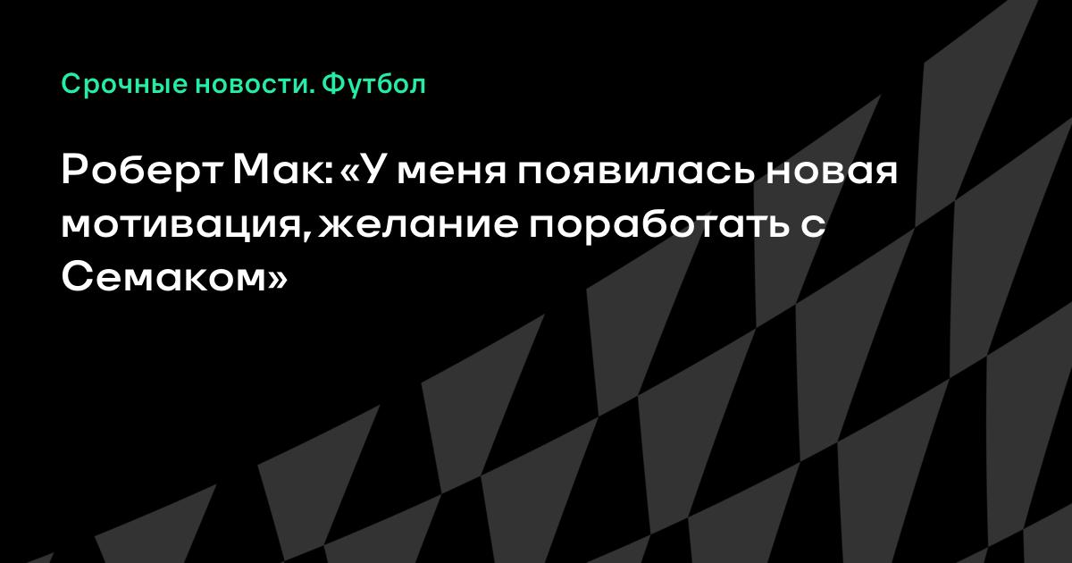 Роберт Мак: «У меня появилась новая мотивация, желание поработать с Семаком»