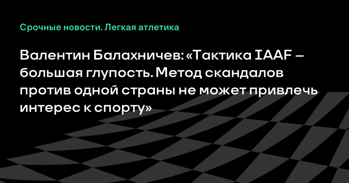 Валентин Балахничев: «Тактика IAAF – большая глупость. Метод скандалов против одной страны не может привлечь интерес к спорту»