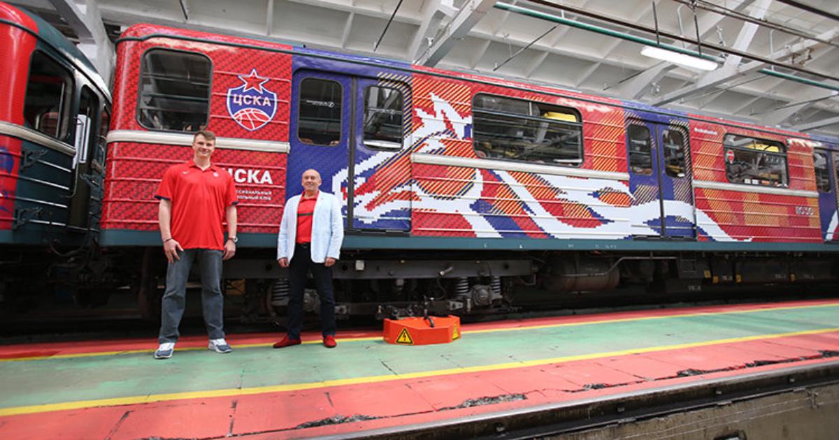 С сегодняшнего дня по Замоскворецкой ветке московского метрополитена будет курсировать поезд ЦСКА. Один из вагонов поезда оформлен в баскетбольной тематике.