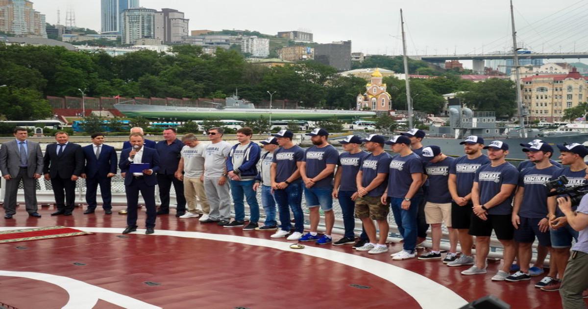 Именные свитера игрокам вручили глава Приморского края Андрей Тарасенко и командующий Тихоокеанским флотом Сергей Авакянц.