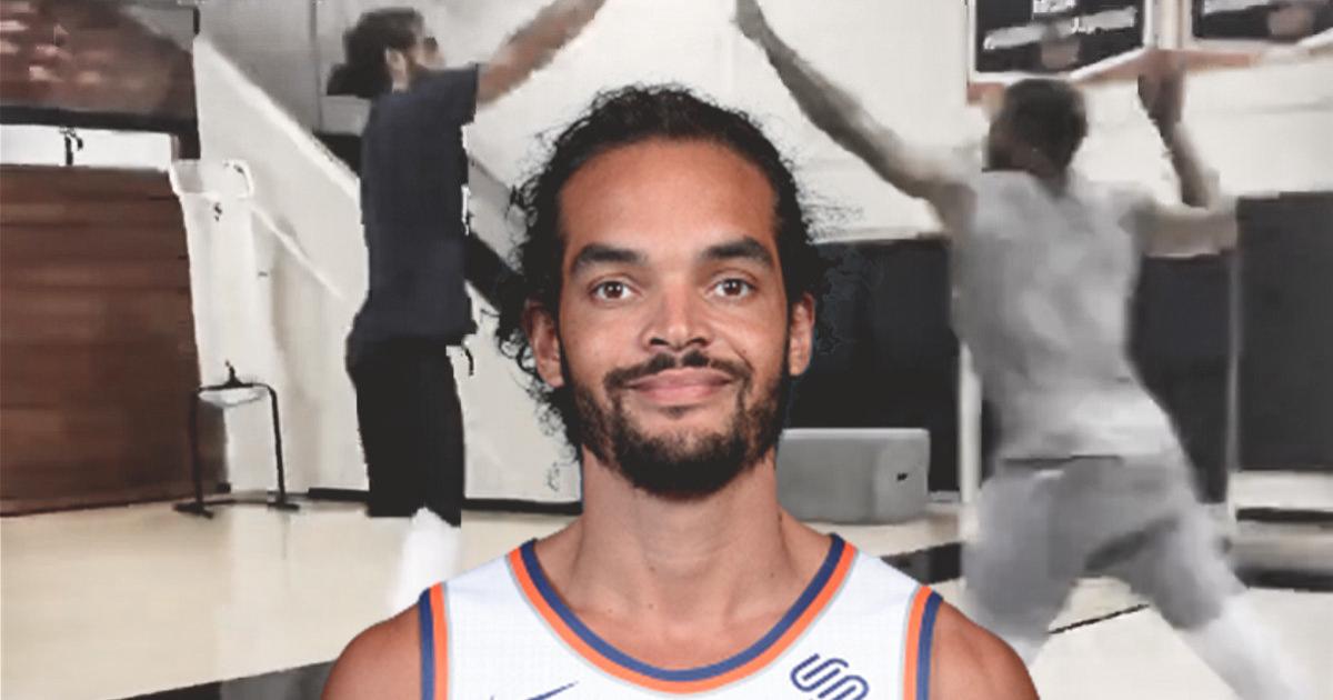 Центровой «Никс» Жоаким Ноа на тренировке реализовал два подряд дальних броска с сопротивлением.