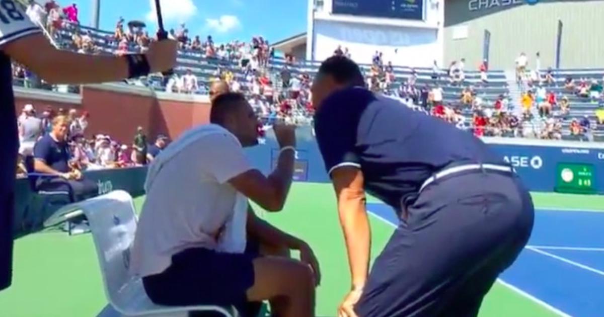 По ходу матча второго круга US Open между Ником Кириосом и Пьером-Угом Эрбером судья Мохамед Лайани спустился с вышки, чтобы поговорить с австралийцем, когда он уступал 4:6, 0:3.