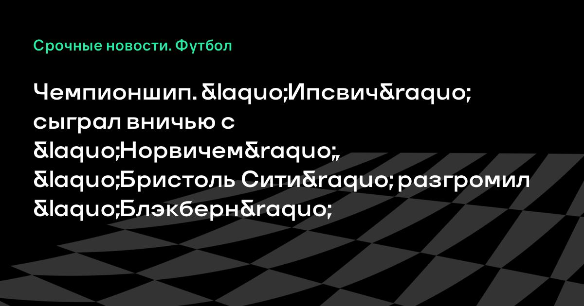 Чемпионшип. «Ипсвич» сыграл вничью с «Норвичем», «Бристоль Сити» разгромил «Блэкберн»