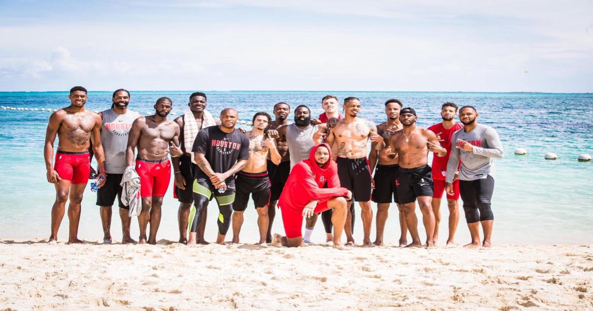Игроки техасцев проводят неофициальный сбор перед началом тренировочного лагеря.