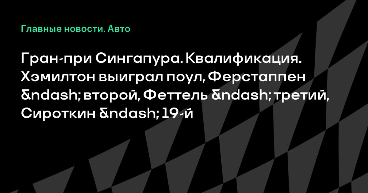 Гран-при Сингапура. Квалификация. Хэмилтон выиграл поул, Ферстаппен – второй, Феттель – третий, Сироткин – 19-й