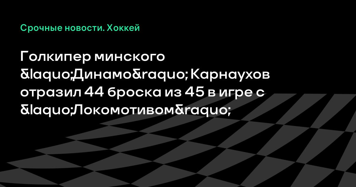 Голкипер минского «Динамо» Карнаухов отразил 44 броска из 45 в игре с «Локомотивом»