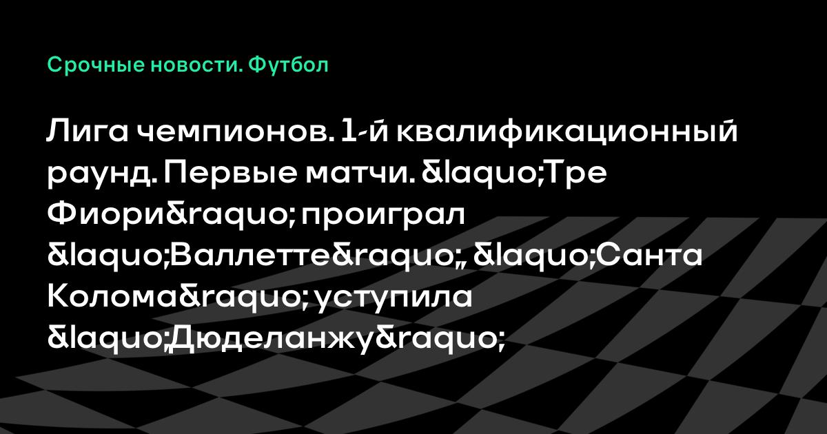 Лига чемпионов. 1-й квалификационный раунд. Первые матчи. «Тре Фиори» проиграл «Валлетте», «Санта Колома» уступила «Дюделанжу»