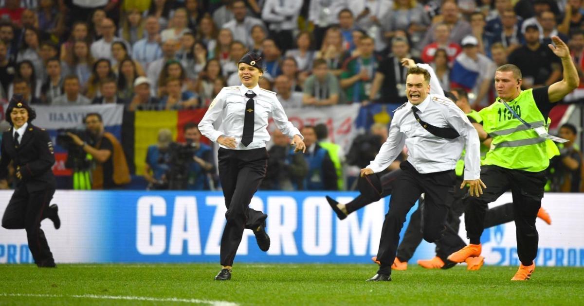 В финале ЧМ на поле выбежали люди в форме. Это акция Pussy Riot