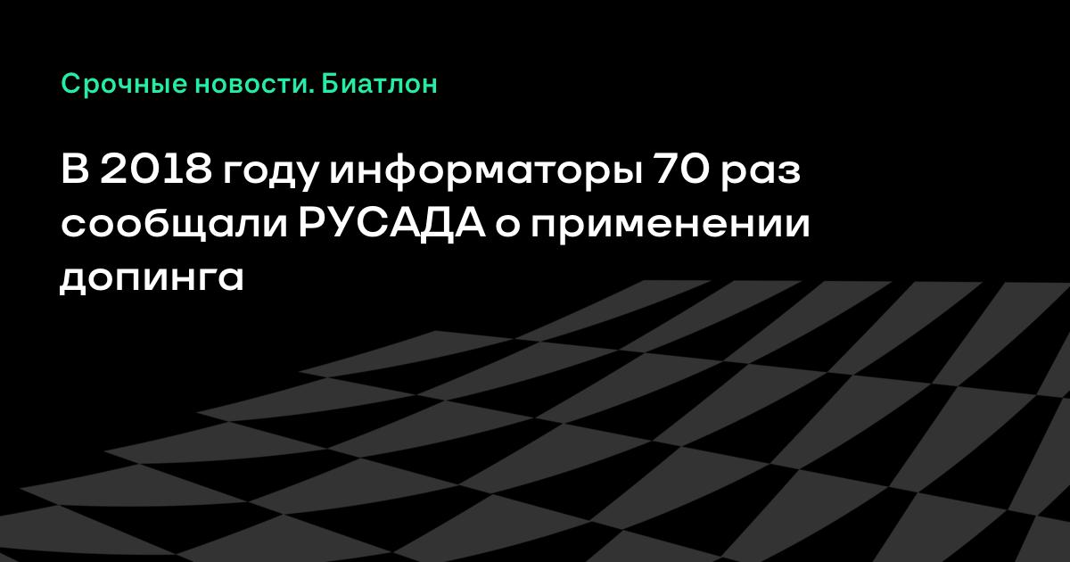 В 2018 году информаторы 70 раз сообщали Российскому антидопинговому агентству (РУСАДА) о применении допинга спортсменами.