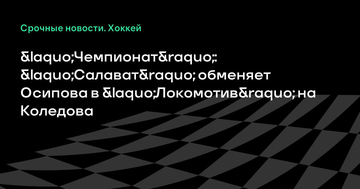 «Чемпионат»: «Салават» обменяет Осипова в «Локомотив» на Коледова