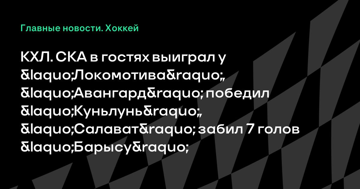 КХЛ. СКА в гостях выиграл у «Локомотива», «Авангард» победил «Куньлунь», «Салават» забил 7 голов «Барысу»