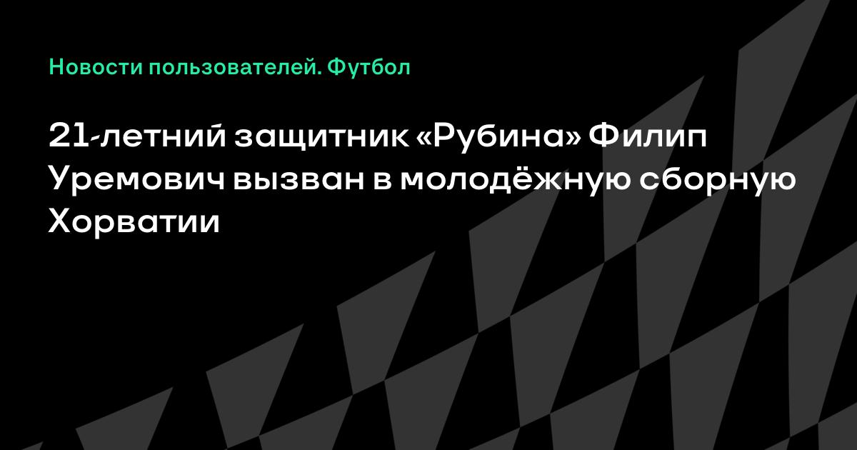 Защитник «Рубина» Филип Уремович вызван в молодёжную сборную Хорватии на отборочные матчи чемпионата Европы U-21 против молодежных сборных Греции (12 октября) и Сан-Марино (15 октября).