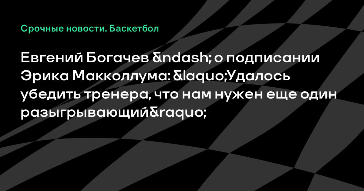Евгений Богачев – о подписании Эрика Макколлума: «Удалось убедить тренера, что нам нужен еще один разыгрывающий»