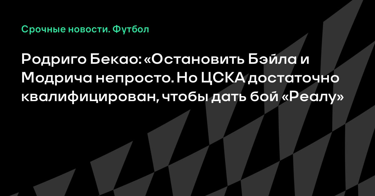 Родриго Бекао: «Остановить Бэйла и Модрича непросто. Но ЦСКА достаточно квалифицирован, чтобы дать бой «Реалу»