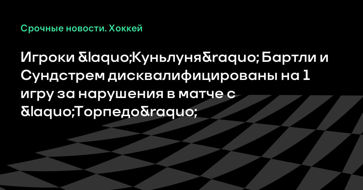 Два игрока «Куньлуня» – защитник Виктор Бартли и форвард Юхан Сундстрем – дисквалифицированы на 1 матч по итогам игры с «Торпедо» (2:3 ОТ).