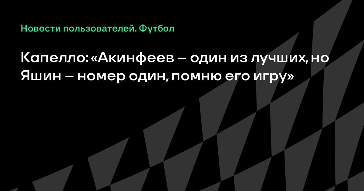 Как и все голкиперы, Игорь важен для команды. У соперника может быть всего шанс за игру — и вратарю в этот момент нужно не подвести. Он должен оставаться сосредоточенным вне зависимости от того, давят на его ворота или нет. На мой взгляд, Игорю это удавалось. Сравним ли Акинфеев с Яшиным? Игорь — один из лучших, но Яшин для меня — номер один. Помню его игру», — сказал Капелло.
