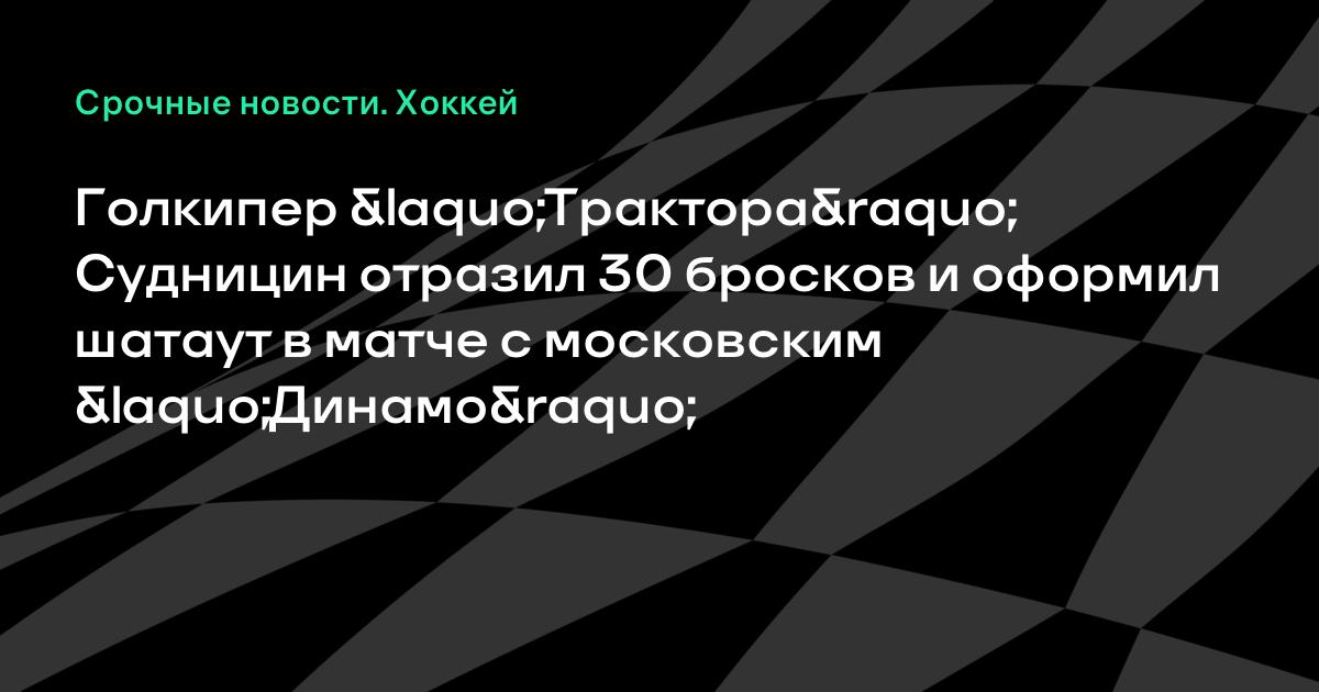 Голкипер «Трактора» Судницин отразил 30 бросков и оформил шатаут в матче с московским «Динамо»