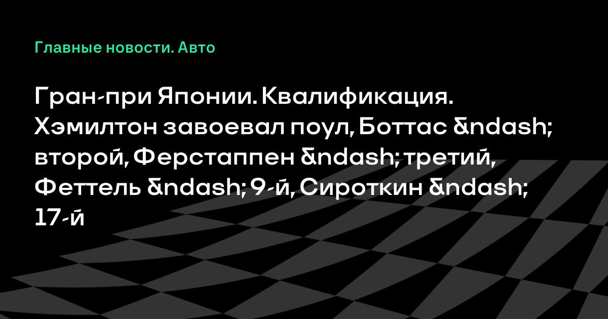 Гран-при Японии. Квалификация. Хэмилтон завоевал поул, Боттас – второй, Ферстаппен – третий, Феттель – 9-й, Сироткин – 17-й