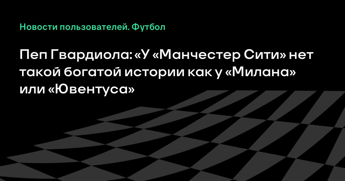 Пеп Гвардиола: «У «Манчестер Сити» нет такой богатой истории как у «Милана» или «Ювентуса»