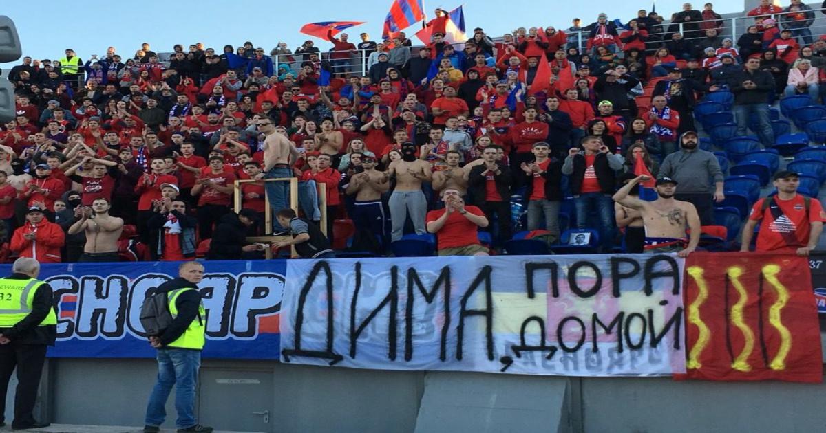 На фанатской трибуне во время матча со «Спартаком» (2:3) появился баннер «Дима, пора домой».