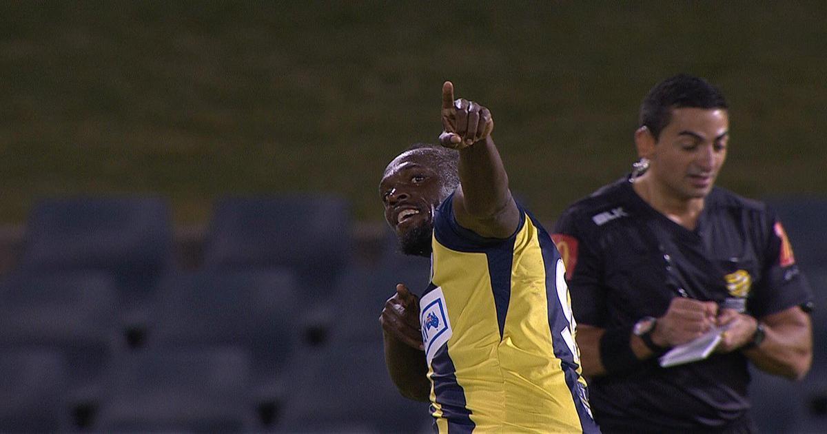 Here it is, @usainbolt, the footballer, scores his maiden Mariners goal. What a moment! Don’t think limits! ⚡️ #SWSvCCM #CCMFC 🎥@FOXFOOTBALL pic.twitter.com/X7zrqmrYCZ